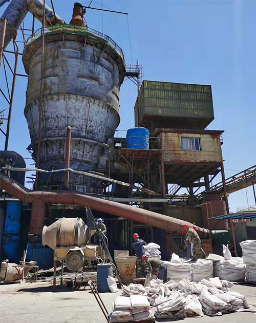 25萬(wàn)噸硫鐵礦制酸裝置沸騰爐爐頂澆筑施工現(xiàn)場(chǎng)