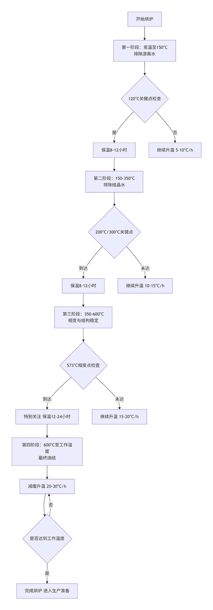 關(guān)鍵節(jié)點:120℃左右是大量游離水蒸發(fā)的集中點,需適當(dāng)保溫
